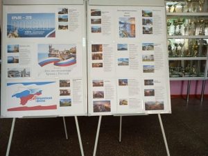 На выставках представлены фотографии достопримечательностей и значимых мест полуострова Крым. Выставки подготовили педагоги-библиотекари: Спиридонова Л.Н. и Гордиенко Т.Л.