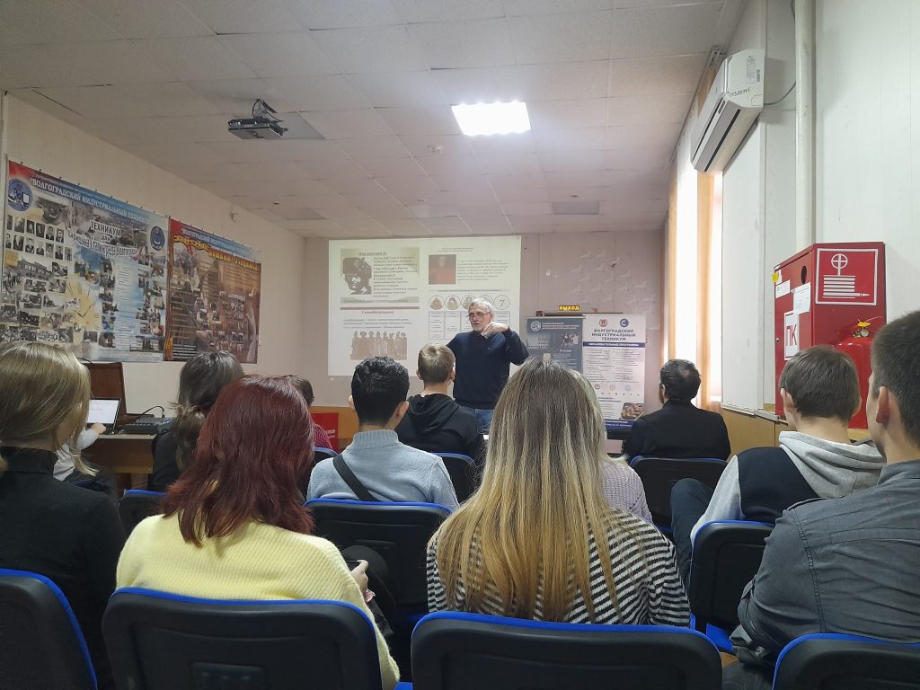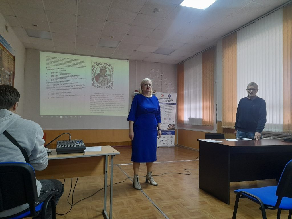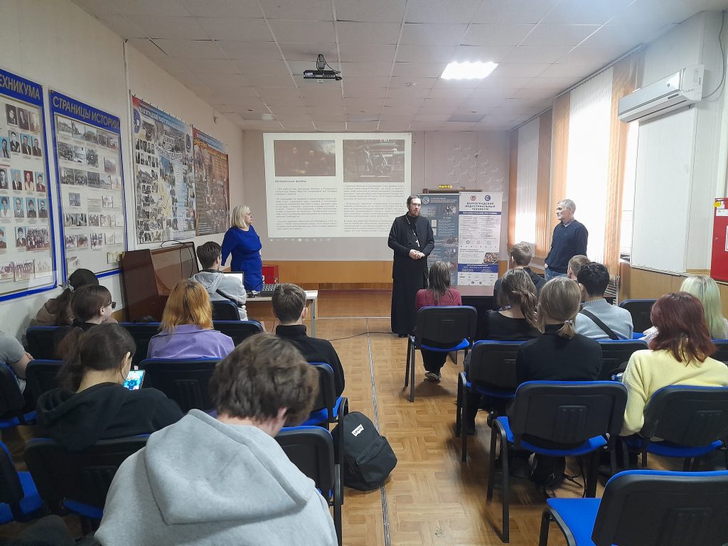 В рамках договора о сотрудничестве между Волгоградской епархией и ГБПОУ «Волгоградским индустриальным техникумом» при содействии советника директора по воспитанию Байцеровой Т.М., 6 ноября в ГБПОУ ВИТ для студентов первых куров прошел интерактивный урок, посвященный Дню народного единства.