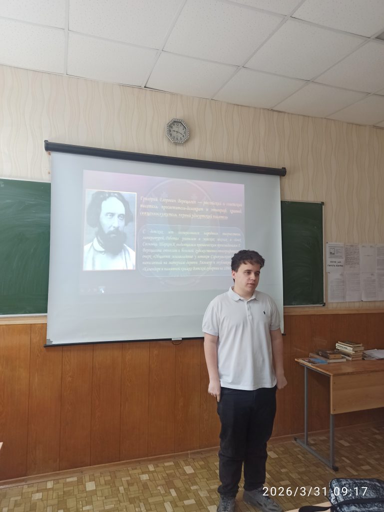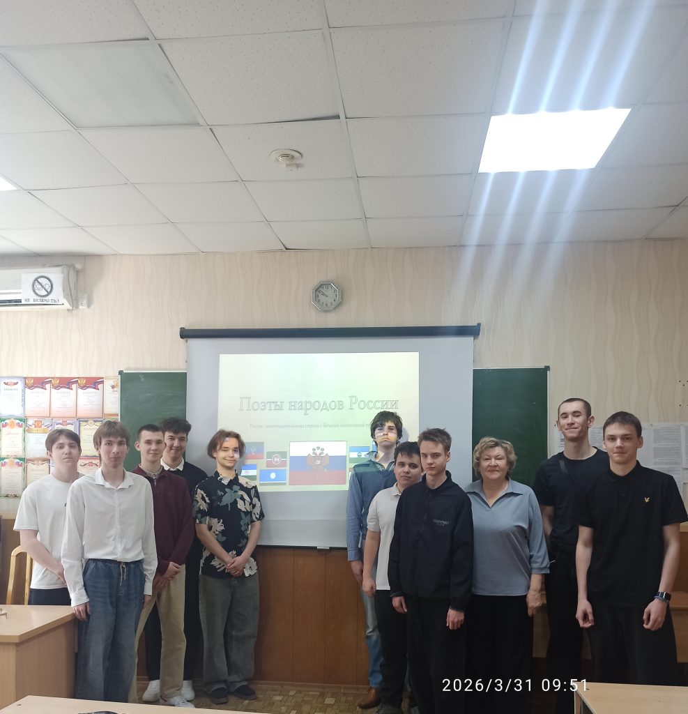 «Стихи большой страны и маленьких народов» – под таким названием 31 марта 2026 г. в главном корпусе ГБПОУ «Волгоградский индустриальный техникум» прошёл открытый урок по литературе (в рамках методической недели истории, русского языка и литературы). Активное участие в нём приняли обучающиеся группы МТН- 125 специальности «Машинист технологических насосов и компрессоров» (отв. Фимина А.А., преподаватель русского языка и литературы).