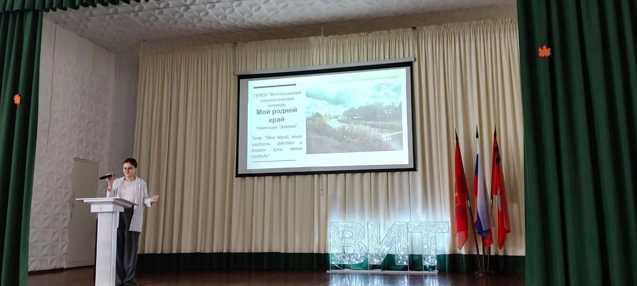 В финал конкурса вышли 19 ярких и эмоциональных работ по шести номинациях: – Моя малая родина – Из истории родного края – Исторические памятники родного края – Семейная реликвия – История моего техникума / колледжа – Земляки Конкурс открылся литературно-музыкальным прологом «С чего начинается Родина» в исполнении первокурсников Волгоградского индустриального техникума. Оценивало конкурс компетентное жюри, включающее руководителей образовательного учреждения и видных деятелей культуры: – Гайдадина Ирина Вадимовна — исполняющая обязанности директора ГБПОУ ВИТ, – Двинянина Ирина Вадимовна — заместитель директора по учебно-воспитательной работе, – Афанасьева Елена Михайловна — директор Волгоградского областного центра народного творчества, – Парфёнов Александр Евгеньевич — начальник научно-издательского отдела музея-заповедника «Старая Сарепта», – Преподаватели ГБПОУ ВИТ: Фимина Анна Александровна, Бородкина Светлана Анатольевна, Шостак Кристина Сергеевна. Жюри с большим интересом просмотрела представленные презентации . Все работы оказались яркими, интересными и наполненными искренней любовью к родным местам, историческому наследию и учебным заведениям участников. Завершился конкурс творческими номерами образцового художественного ансамбля народного танца «Русь», добавившими праздничного настроения зрителям. Параллельно проходила интересная передвижная выставка «История Сарепты — немецкого поселения в Царицыне», организованная музеем-заповедником «Старая Сарепта». Победители конкурса заслуженно получили награды — дипломы и памятные подарки, включая бесплатное посещение уникального историко-культурного комплекса «Старая Сарепта». Подобные мероприятия играют важную роль в воспитании патриотизма среди молодёжи, формировании чувства гордости и любви к родному краю, развитию уважения к культурному наследию своего народа и готовности достойно служить отечеству.