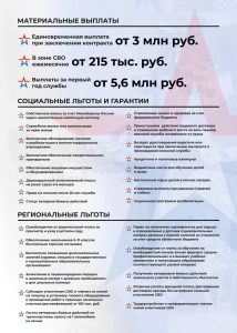 – Единовременные денежные выплаты до 3 миллионов рублей при подписании контракта;