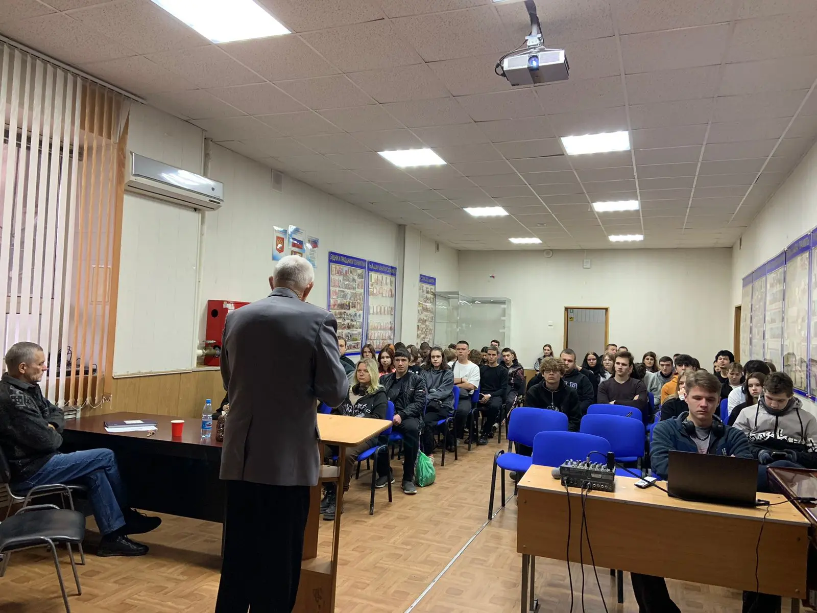 Сегодня, 8 декабря 2025 года, в нашем техникуме в рамках классного часа прошло профориентационно-профилактическое мероприятие – встреча со специальным гостем, полковником МВД, Председателем совета ветеранов МВД, Александром Георгиевичем